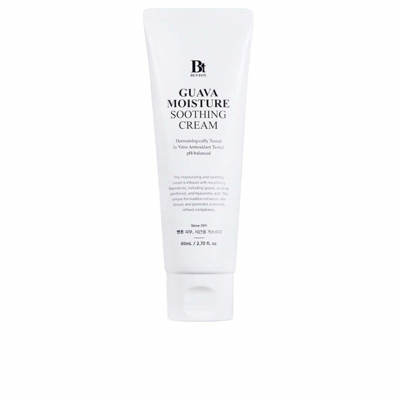 La crème visage GUAVA de la marque Benton est un produit spécialement formulé pour le soin de la peau avec une approche polyvalente, adaptée aux peaux mixtes, grasses et sensibles, ce qui en fait une option complète pour divers types d’épiderme. Ce soin hydratant présente un format de 80 ml, offrant une quantité optimale pour un usage quotidien prolongé. Fabriquée en Corée du Sud, pays reconnu pour son excellence en cosmétique avancée, la crème se distingue également par son caractère végane, répondant aux attentes actuelles de produits éthiques et sans ingrédients d’origine animale. Sa formule équilibrée apporte une hydratation sans effet gras, capable de maintenir l’équilibre naturel du derme aussi bien sur les zones sèches que sur celles sujettes aux brillances ou irritations. Ce soin unisexe est conçu pour offrir un confort durable et une texture légère qui pénètre facilement, idéal pour ceux qui recherchent un traitement adapté à différentes conditions cutanées sans compromettre sécurité ni efficacité. Bien qu’elle ne spécifie pas de protection solaire, sa composition et son origine soutiennent son intégration dans des routines beauté où hydratation et soin délicat sont prioritaires. En résumé, la crème visage GUAVA de Benton représente une option fiable et raisonnée pour les utilisateurs qui privilégient des produits bien équilibrés, efficaces et respectueux de la peau et de l’environnement.