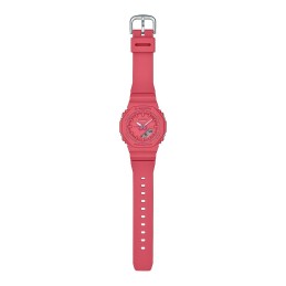 OAK COMPACT od Casio G-Shock to zegarek damski, który łączy funkcjonalność ze stylem w nowoczesnym, kobiecym wzornictwie. Jego wyróżniającym elementem jest różowy kolor zarówno koperty, jak i paska z żywicy, materiału zapewniającego lekkość, wytrzymałość i komfort noszenia na co dzień. Ten wielofunkcyjny model oferuje różne praktyczne funkcje, dostosowując się do codziennych aktywności oraz nieformalnych sytuacji, gdzie ważna jest efektywna kontrola czasu. Zapięcie na klamrę gwarantuje pewne i stabilne dopasowanie do nadgarstka, pasujące do różnych rozmiarów bez utraty wygody. OAK COMPACT to techniczna i estetyczna propozycja odpowiadająca potrzebom współczesnej kobiety, zachowująca znaną trwałość i niezawodność linii G-Shock, z delikatniejszym i atrakcyjniejszym wyglądem dzięki różowemu odcieniowi. Ten zegarek to zrównoważona opcja dla osób ceniących wielofunkcyjny dodatek, zaprojektowany z myślą o kobietach i dostosowany do różnorodnego, codziennego użytkowania.