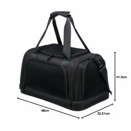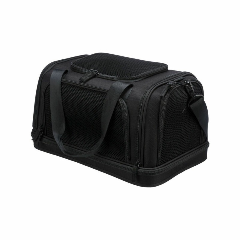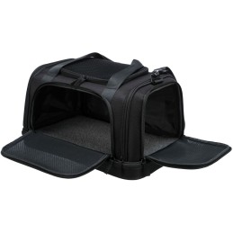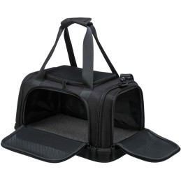 Transportinul Airline Plane de la marca Trixie este o geantă pentru animale de companie concepută special pentru a facilita transportul sigur și confortabil al animalelor mici în timpul călătoriilor, fiind ideală pentru utilizarea ca bagaj de mână în avion, deoarece este acceptată de majoritatea companiilor aeriene. Structura sa combină materiale de înaltă calitate, precum poliesterul și spuma EVA solidă, care oferă o bază impermeabilă, căptușită și detașabilă pentru confort și protecție sporită a animalului. Acest transportin dispune de o deschidere frontală, laterală și superioară, permițând un acces versatil și comod pentru a introduce sau scoate animalul. Este echipat cu un buzunar exterior pentru depozitarea accesoriilor sau documentelor necesare în timpul călătoriei. Pentru a facilita manevrarea, are două mânere de mână, o curea scurtă integrată și o bandă de umăr detașabilă, oferind mai multe opțiuni ergonomice de transport. De asemenea, poate fi prins de cărucior, permițând combinarea cu alte bagaje fără efort. Designul său în culoare neagră este practic și discret, adaptându-se oricărui stil de călătorie. Datorită tuturor acestor caracteristici, Airline Plane de la Trixie oferă o soluție funcțională și rezistentă, conformă cu reglementările pentru transportul aerian al animalelor, asigurând confort și siguranță pe durata deplasărilor.